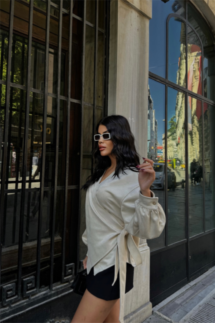 SÜET KRUVAZE BLUZ BAĞLAMA DETAYLI – Taş