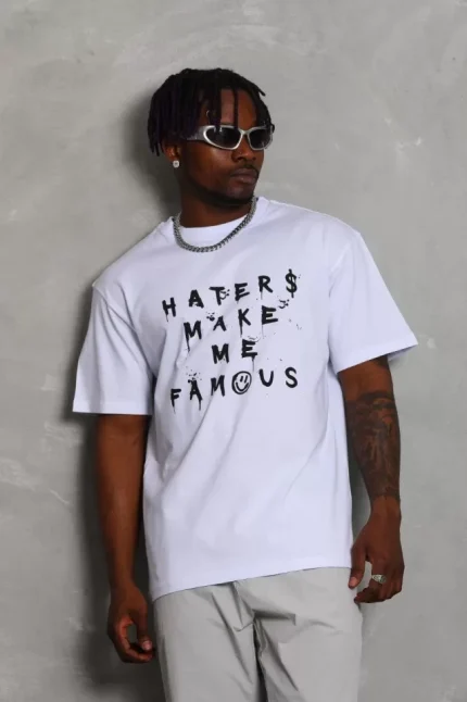 Unisex Oversize Baskılı Bisiklet Yaka T-Shirt – Beyaz