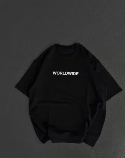 Unisex Bisiklet Yaka Baskılı Oversize T-Shirt – Siyah