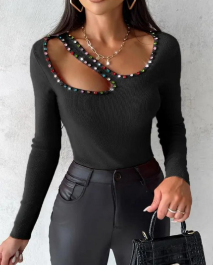 Kadın Uzun Kollu Yaka Taş Ve Dekolte Detay Kaşkorse Bluz