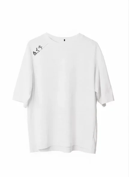 Unisex Bisiklet Yaka Baskılı Oversize T-Shirt – Beyaz