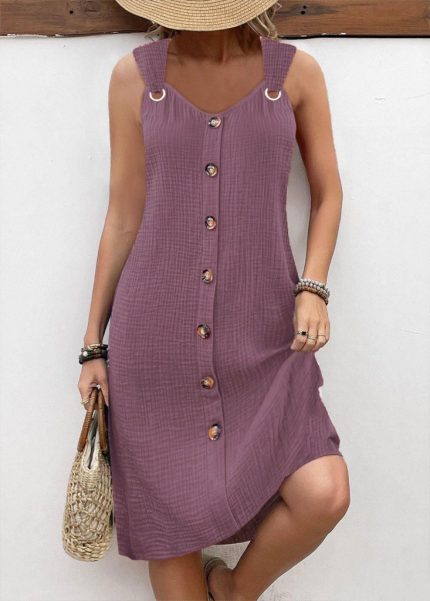 Kadın Askılı V Yakalı önden Düğmeli Narin Elbise