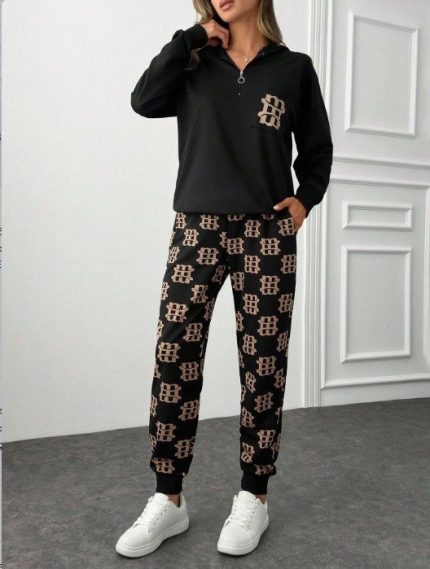 Kadın Uzun Kollu Iki Iplik Kumaş Fermuar Ve Cep Detay Kapüşonlu Ikili Takım
