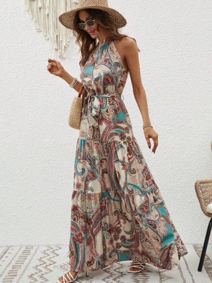 Kadın Kısa Kollu Madonna Yaka Fırfırlı Belden Yırtmaçlı Maksi Süprem Elbise