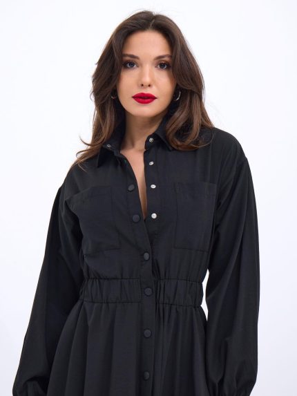 Kadın Uzun Kollu Yakalı önü Düğmeli Mini Modal Elbise