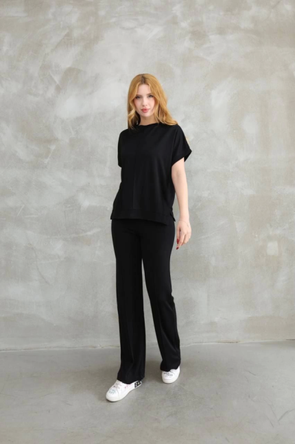 Osy Modal Yumuşak Dokulu Kumaş Bisiklet Yaka Kısa Kollu Takım – Siyah