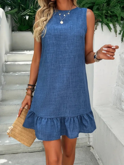 Kadın Kolsuz Bisiklet Yaka Fırfırlı Sofya Elbise