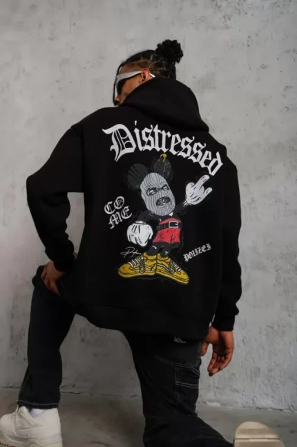 Erkek Üç İplik Baskılı Kapüşonlu Sweat – Siyah