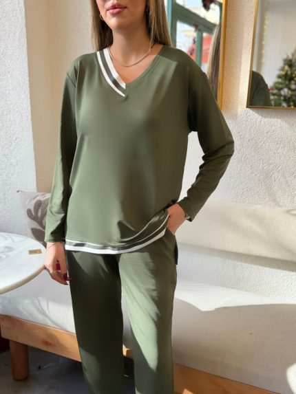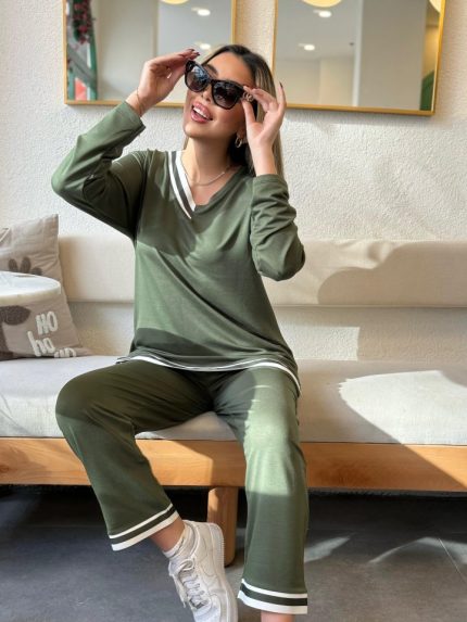 Kadın Uzun Kollu Ribana Detay Viskon Iki Iplik Ikili Takım