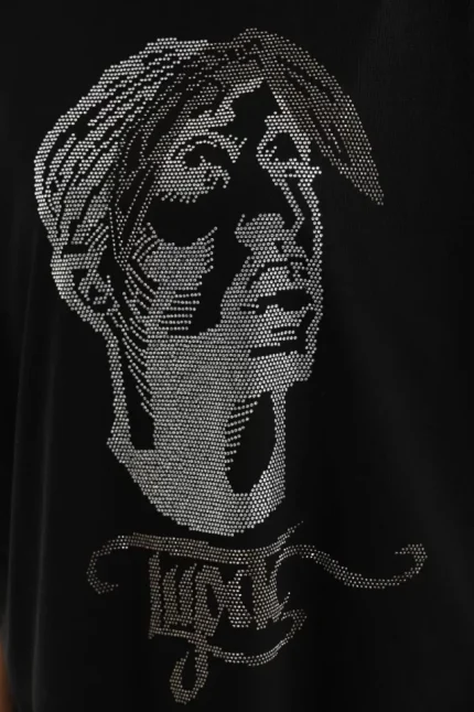 Unisex Taş Desenli Oversize T-Shirt – Siyah