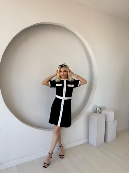 Kadın Kısa Kollu Bisiklet Yaka önden Düğmeli Modal Elbise