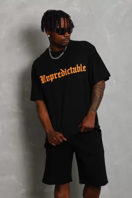 Unisex Bisiklet Yaka Baskılı Oversize T-Shirt – Siyah