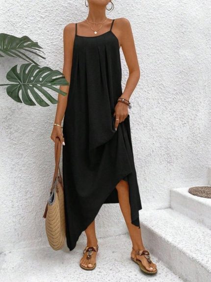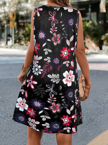 Kadın Askılı Yuvarlak Yaka Desenli A Kesim Süprem Elbise