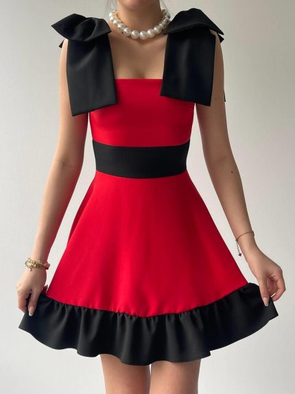 Kadın Sıfır Kol Delikli örgü Detay Mini Triko Pareo Elbise