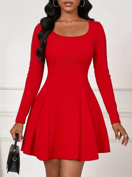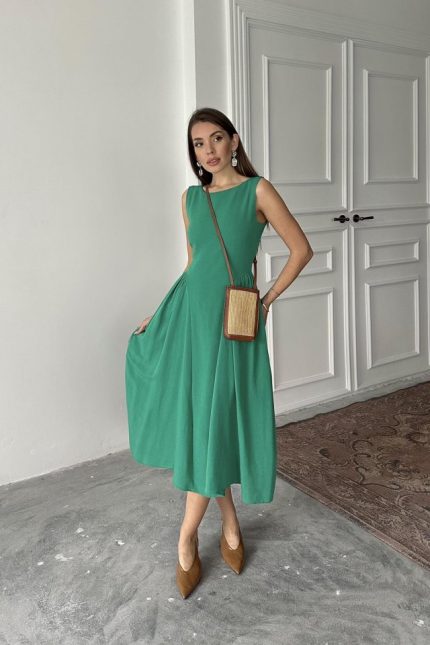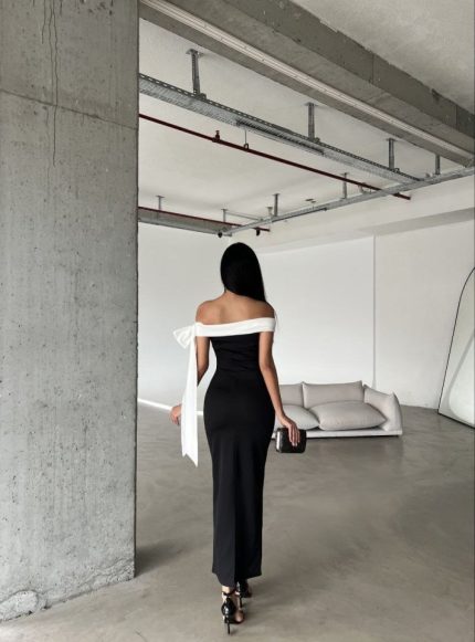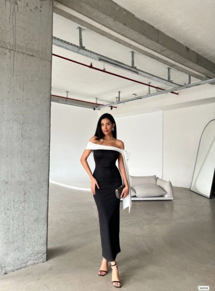 Kadın Madonna Yaka Skuba Krep Kumaş Kurdale Detay Elbise