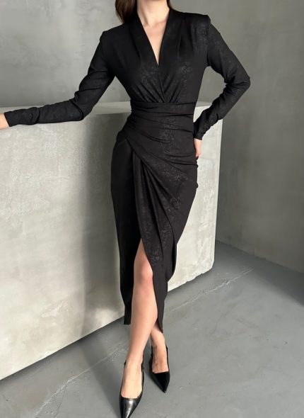 Kadın İp Askılı Yırtmaçlı Büzgülü Elbise