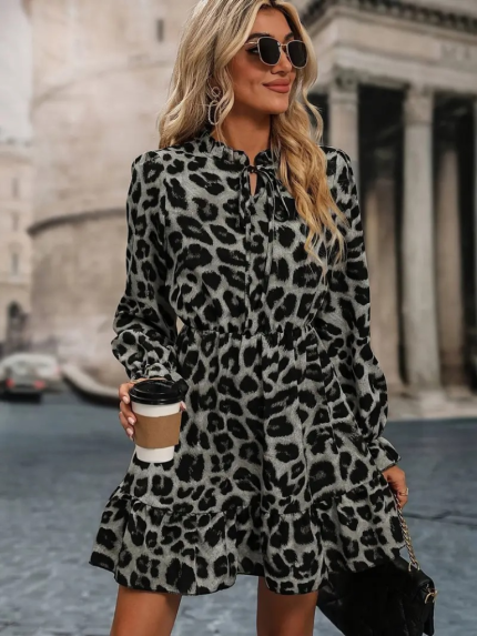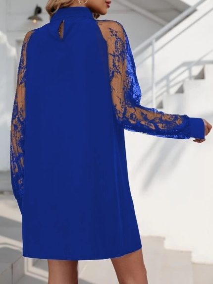 Kadın Uzun Kollu önden Fermuarlı Beli Bağcıklı Kısa Viskon Iki Iplik Elbise