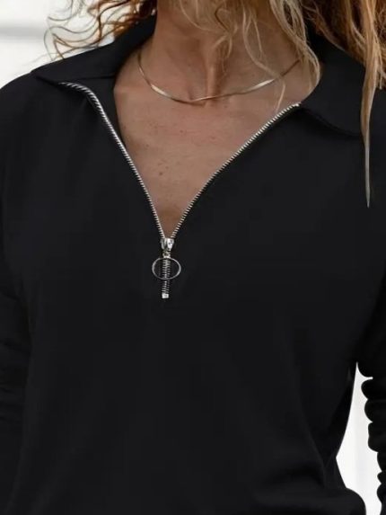 Kadın Uzun Kollu Yakalı Fermuarlı Iki Iplik Bluz