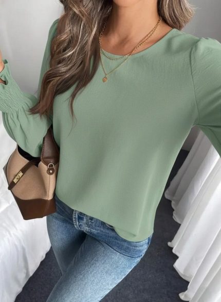 Kadın Uzun Kollu Yuvarlak Yaka Aerobin Bluz