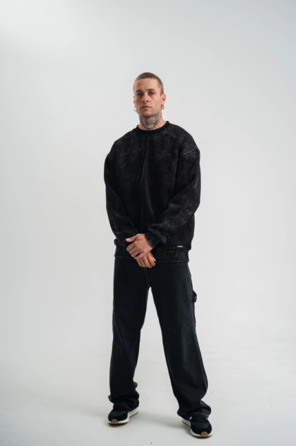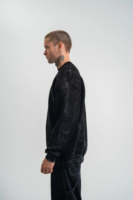 Unisex Bisiklet Yaka Özel Pis Dikişli Yıkamalı SweatShirt – Siyah
