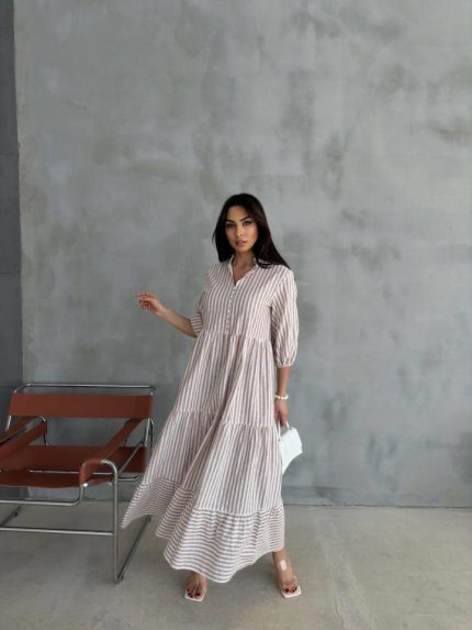 Kadın Uzun Kollu Yakalı önden Fermuarlı Uzun Viskon Iki Iplik Elbise
