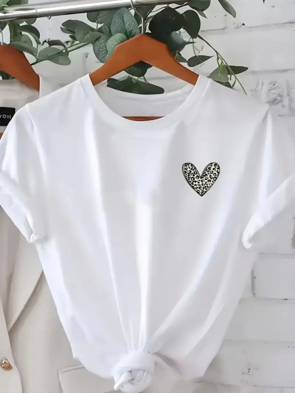₺1.300,00Kadınlar Için Şık Leopar Kalp Baskılı Günlük Tişört – Büyük Beden, Makinede Yıkanabilir, Sevgililer Günü – Günlük Kıyafetler Için Mükemmel- Beyaz
