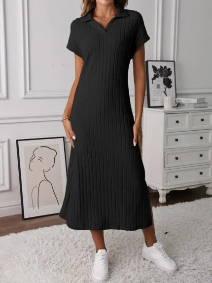Kadın Uzun Kollu Bisiklet Yaka Yırtmaç Detay Triko Midi Boy Elbise