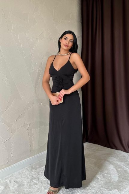 Kadın Kolsuz Kapşonlu Uzun Viskon Elbise