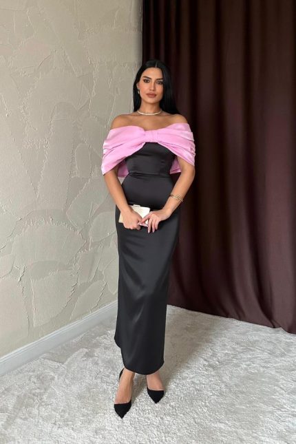Kadın Uzun Kollu V Yakalı Kürk Detaylı Kaşkorse Elbise