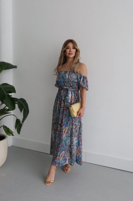Kadın Askılı Geometrik Yaka çiçek Lazer Kesim Ithal Krep Elbise