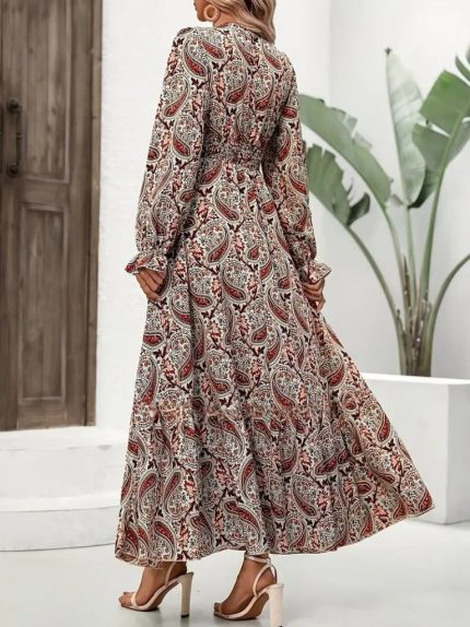 Kadın Uzun Kollu üst şardonlu Kaşkorse Alt Süprem Desenli Elbise