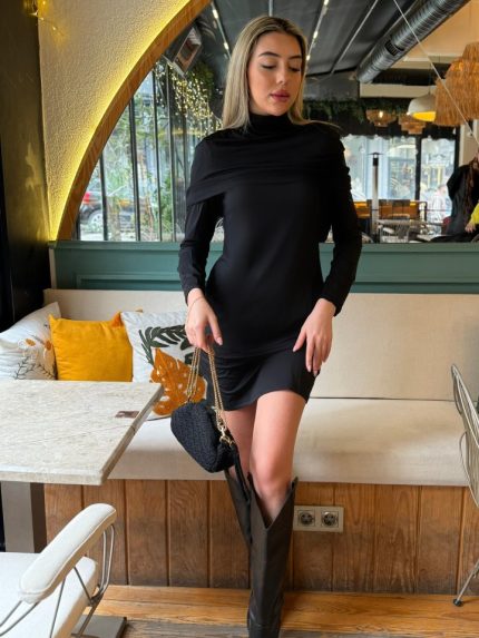 Kadın Uzun Kollu Balıkçı Yaka Bluz Ve Etek Ikili Triko Takım