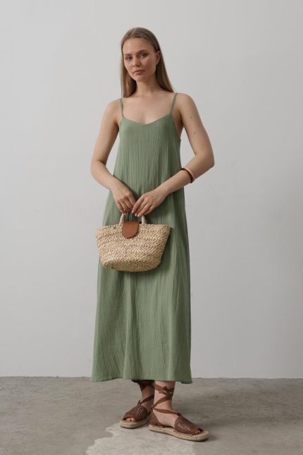 Kadın Sıfır Kollu önden çapraz Detaylı Leopar Desenli Süprem Elbise