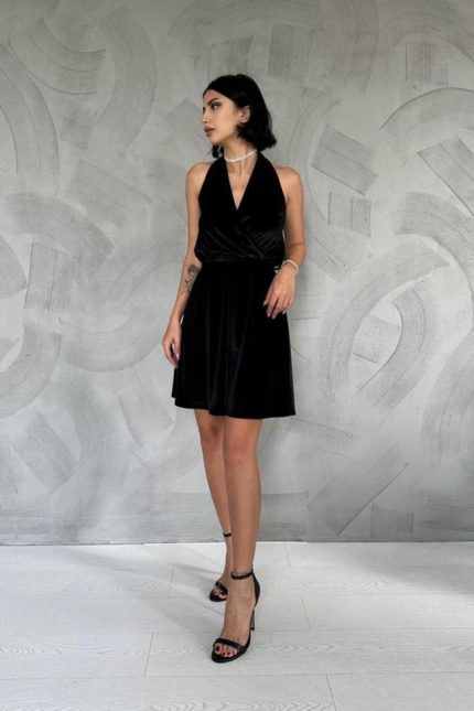 Kadın Uzun Kollu Kare Yaka Mini Balon Modal Elbise