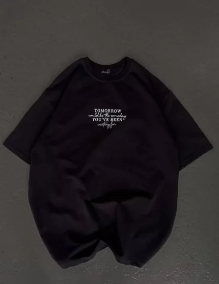 Unisex Bisiklet Yaka Baskılı Oversize T-Shirt – Beyaz