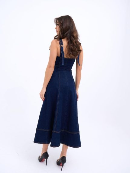 Kadın Halter Yaka Simli Kumaş Sırtı Bağcık Detay Prenses Elbise