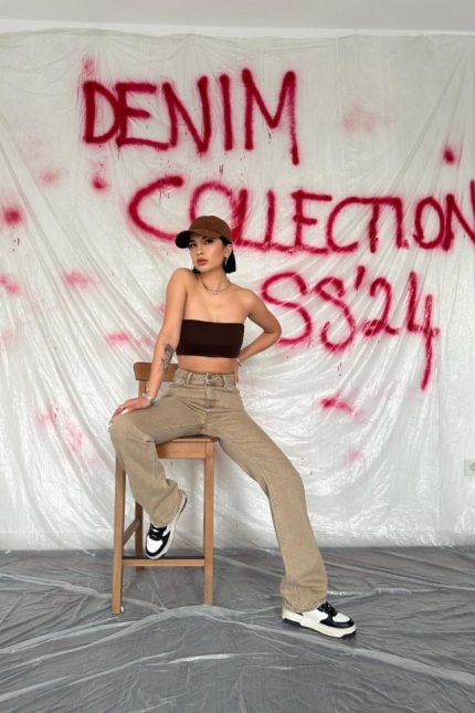 Yüksel Bel Rahat Paça Pantalon – Kahverengi