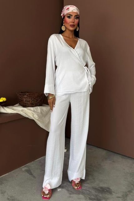 Kruvaze Model Klasik Pantolonlu Çupra Keten Takım 10191