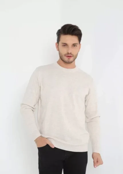 Unisex Uzun Kol Biskilet Yaka Dokuma Triko – Bej