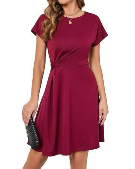 Kadın Sendy Kumaş Büzgü Detaylı Kısa Kollu Elbise