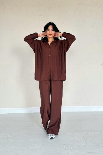Kahverengi Alice Gömlek Ve Bol Kesim Pantolon Takım