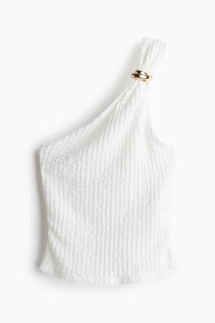 Kadın Uzun Kollu Tek Omuz Askı Detay Salaş Viskon Iki Iplik Bluz