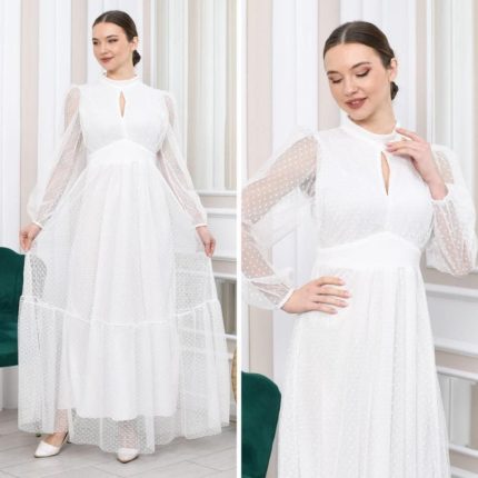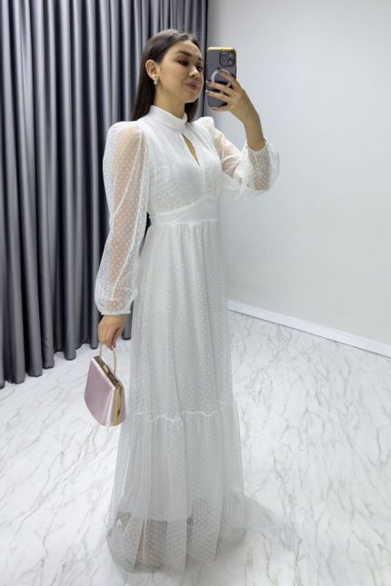 Kadın Damla Yaka Sırt Dekolteli Astarlı Tül Elbise