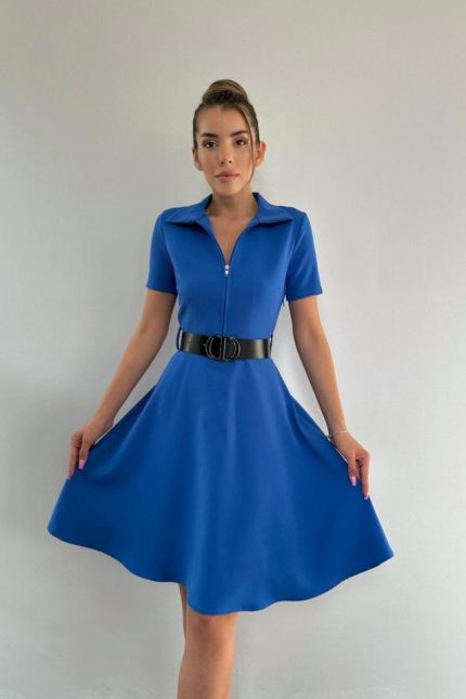 Kadın Kısa Kollu Yakası Açık Katlı Bürümcük Balon Elbise
