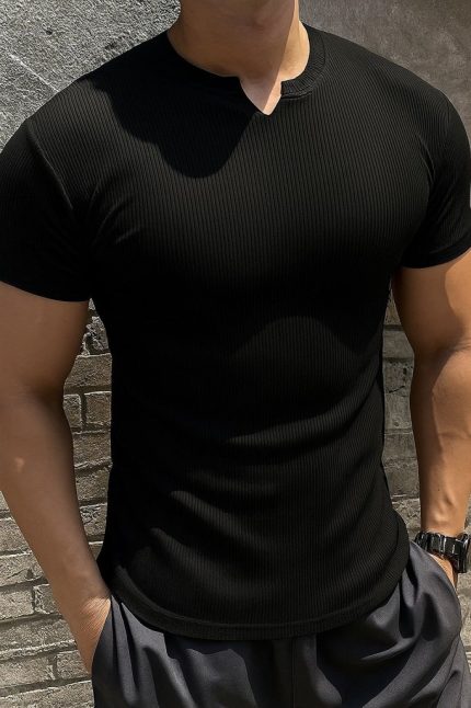 Erkek Kapşonlu Slim Fit T-shirt – Siyah