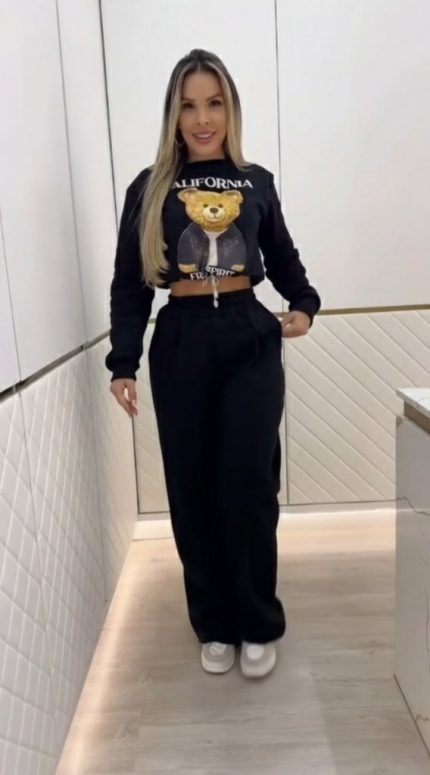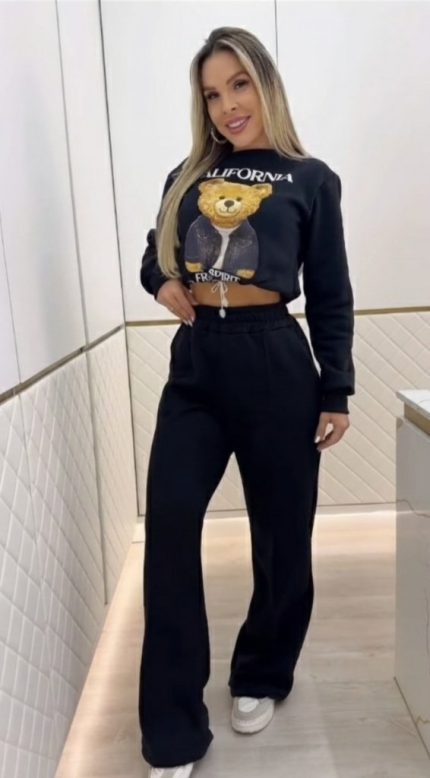 ₺500,00Kadın Uzun Kollu Bisiklet Yaka Desenli Iki Iplik şardonlu Bluz Ve Pantolon Ikili Takım