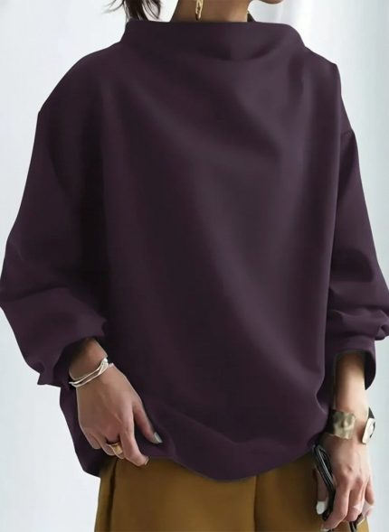 Kadın Uzun Kollu Geniş Balıkçı Yaka Modal Mürdüm Bluz