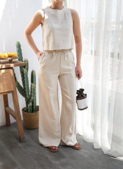 Keten Bluz Ve Pantolon İki̇li̇ Takim