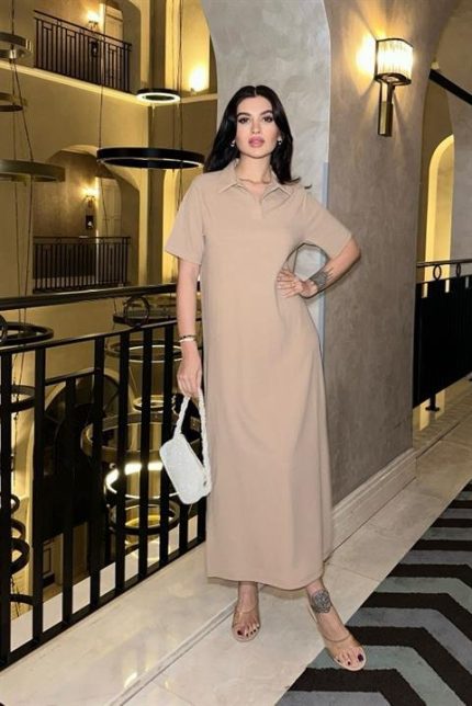 Manque Polo Yaka Yırtmaçlı Elbise 2689-8