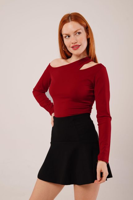 Kadın Uzun Kollu Tek Omuz Askı Detay Salaş Viskon Iki Iplik Bluz